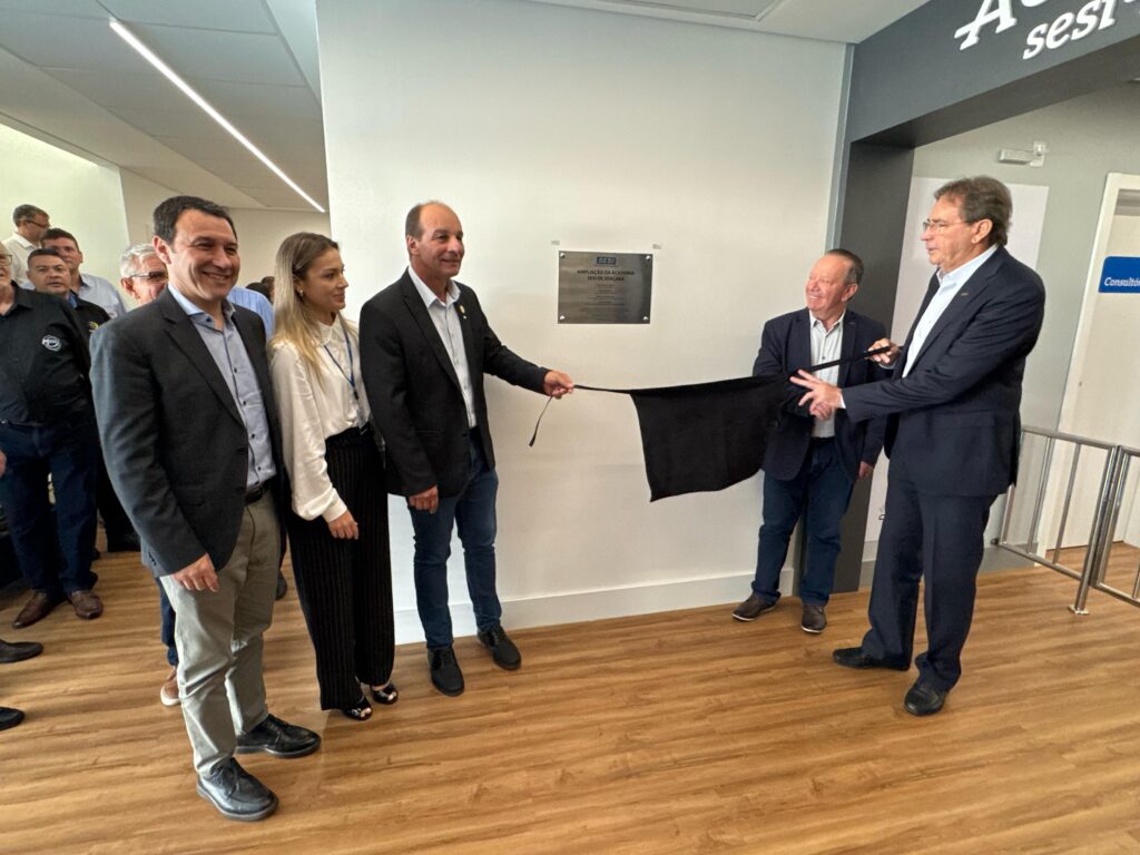 Na tarde de quarta-feira (12), a Federação das Indústrias de Santa Catarina (FIESC) inaugurou a obra de revitalização e ampliação da Academia SESI + Saúde, em Joaçaba. A obra marca o início das revitalizações de unidades da rede, e tem investimento total de R$ 1,4 milhão. O evento contou com a presença do Presidente da FIESC, Mario Cezar de Aguiar e sua comitiva, do Vice-Presidente da FIESC para a região, Márcio Luís Dalla Lana, do Prefeito de Joaçaba, Vilson Sartori, demais autoridades, colaboradores e imprensa local.